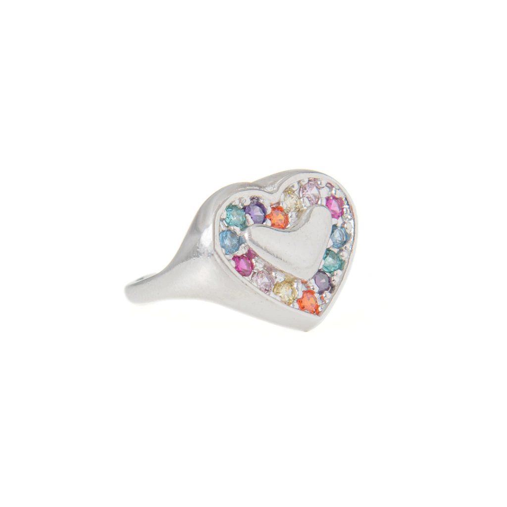 Anel de dedinho de coração com pedras coloridas banhado em ródio. Anel de mindinho é a nova tendência que veio para ficar! Esse modelo além de lindo e super colorido, está um charme. Você pode fazer combinações com outros anéis delicados e modernos, para montar um mix inovador.