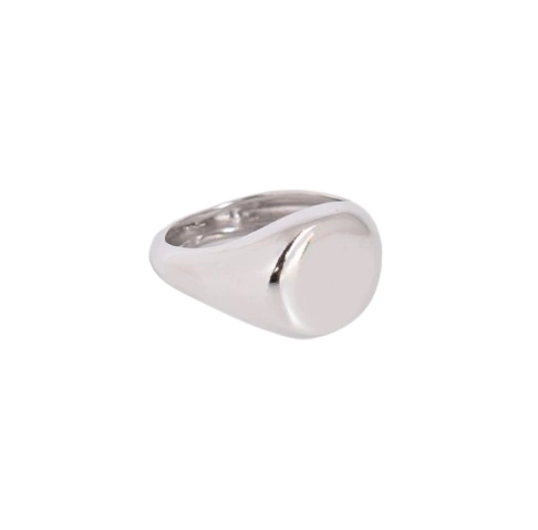Anel de sinete banhado em ródio. Anéis para uso no dedo mindinho estão super em alta e esse modelo liso é maravilhoso! Se você ainda não aderiu à moda, que tal começar com essa peça moderna e atemporal? Experimente e se apaixone!