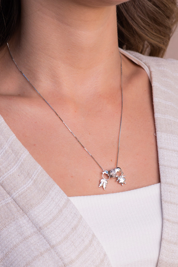 Pingente menino com zircônia banhado em ródio. Perfeito para mamães que gostam de demonstrar o amor pelos seus filhos através de acessórios, esse modelo está lindo e delicado! Você pode montar uma composição com mais de um pingente, menino ou menina, adquirindo nossa corrente veneziana e os pingentes separadores.