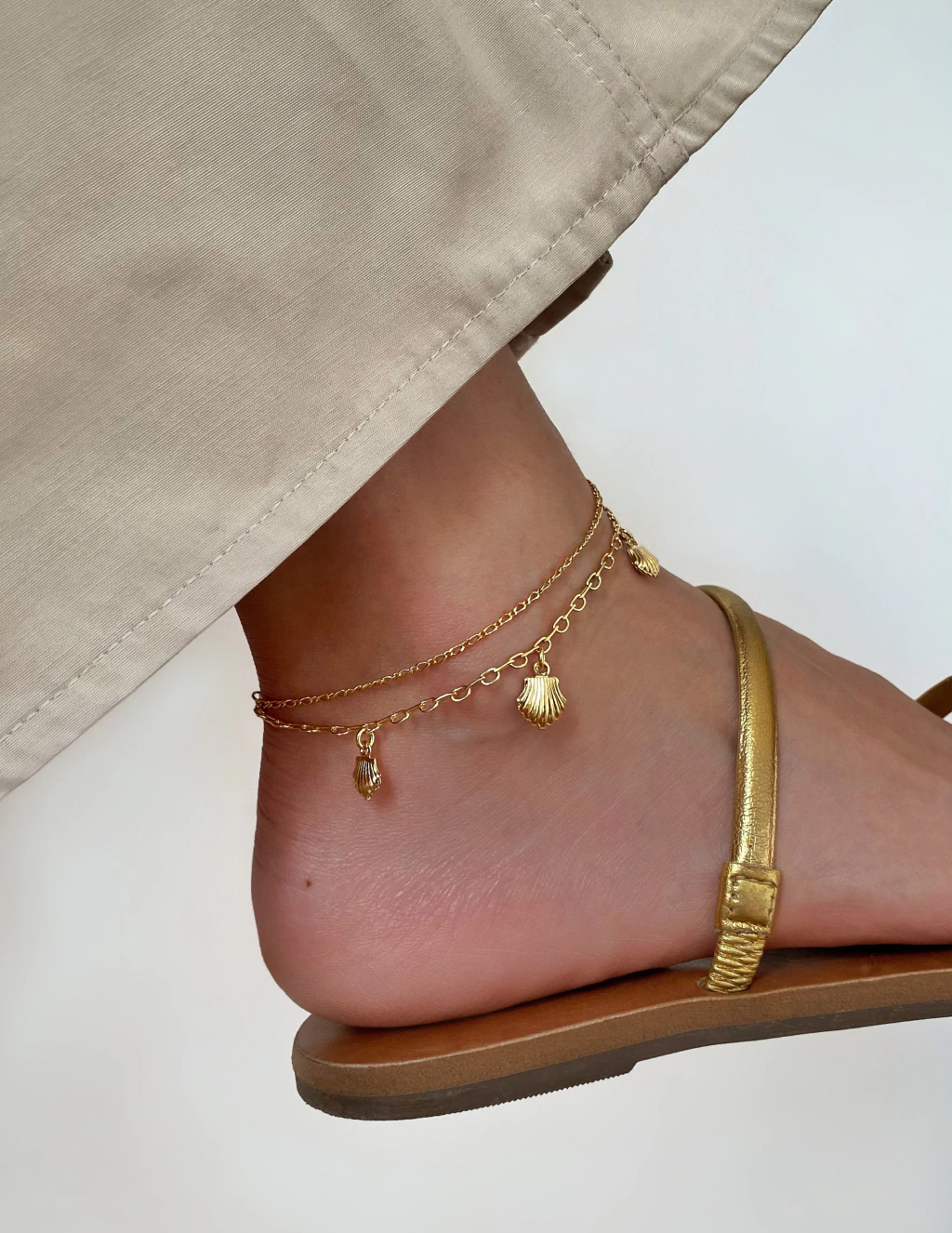 Tornozeleiras com conhas de metal banhada em ouro. Um acessório cheio de charme para quem possui a alma solar e ama acessórios com a cara do verão! Perfeito quando utilizado como peça única ou em combinação com outras tornozeleiras. Brilhe dos pés à cabeça!